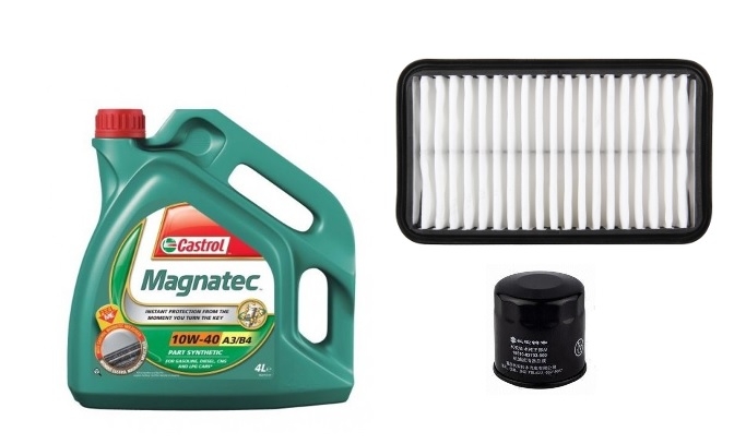 Suzuki Alto olajcsere szett 1.1 2002-2006 levegőszűrő, olajszűrő, Castrol Magnatec 10w40 olaj (13780M79J00, 16510-82703)