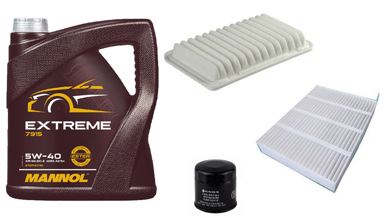 Suzuki Splash olajcsere szett 1.0-1.2 levegőszűrő, olajszűrő, pollenszűrő, Mannol Extreme 5w40 4L (13780-73KA0, J1316004, 95860-51K00)
