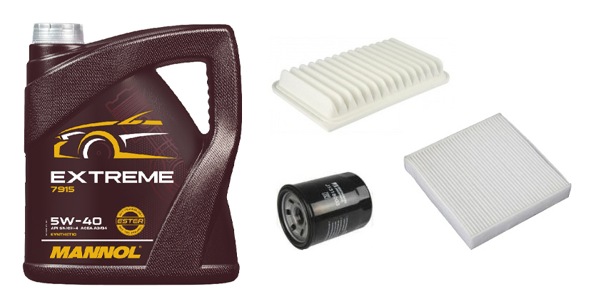Suzuki Swift olajcsere szett 2010-2017 1.2 benzin levegőszűrő, olajszűrő, pollenszűrő, Mannol Extreme 5w40 4L (13780-69L00, 16510-61A31-A21, 95860-62J00)