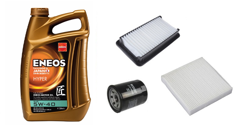 Suzuki Sx4 olajcsere szett 1.5-1.6 benzin 2009.08-ig levegőszűrő, olajszűrő, pollenszűrő, Eneos Premium Hyper 5w40 4L